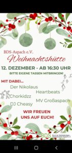 Der BDS Aspach https://www.bds-aspach.de/ veranstaltet auf dem Löwenareal in Großaspach, erneut ein Weihnachtsfest für die ganze Familie. Es freut mich ein kleiner Teil sein zu sein und die Veranstaltung musikalisch begleiten zu dürfen